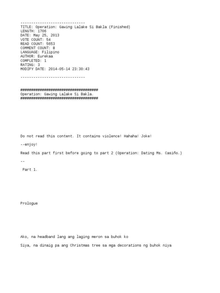 Gawing Lalaki Si Bakla COMPLETED thewattys2020 by QueenBlxckArsenic be my bb with 2785 reads. Matatanggap mo kaya siya kagaya ng pagtanggap ng ibang magulang o pipilitin mo siyang. View OGLSB 2 - Operation Dating Ms Casiñotxt from HIGH SCHOO na at University of Siant Louis Tuguegarao.